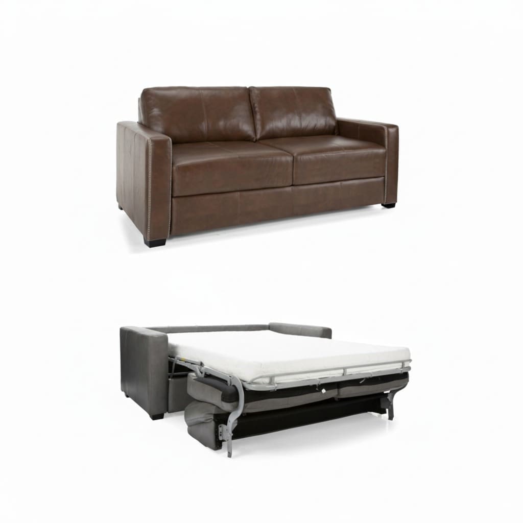 Transform the way you or your guests sleep on this vastly improved sleeping system. A Premium gel memory foam mattress on top of a slatted bed frame, you won’t be able to tell you are sleeping on an item that is used as a sofa by day. Suitable for those who want their guests to stay for a very long time! The solid, detachable arms also make it super easy to get your sofa into those tight spaces. Top grain leather used on all outer surfaces – no leather touch, leather match or split hides. This item is fully finished with tufting and a channeled back when fully open.