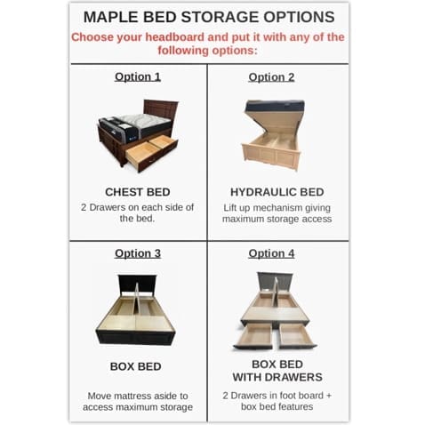 Customers can buy complete matching sets, mix and match designs, mix colours on the same piece or just buy individual pieces. Bed frames are available with or without storage.